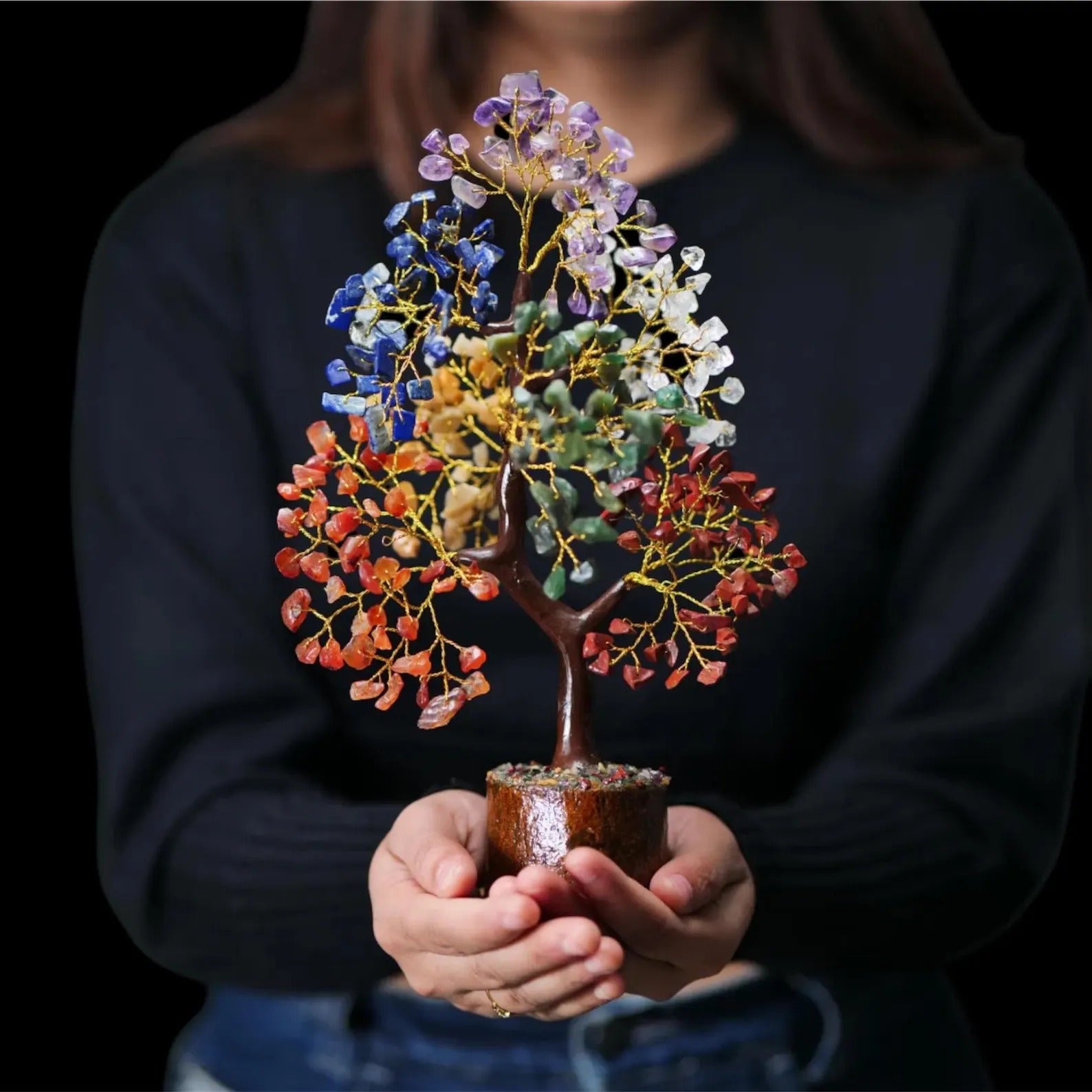Bring harmony and positive energy into your space with this handcrafted 7 Chakra Gemstone Tree, made with over 300 natural raw gemstone chip beads. Each branch is carefully twisted and arranged to represent the seven chakras, symbolizing balance, healing, and spiritual growth. Standing approximately 12 inches tall, this beautiful tree makes a stunning tabletop décor piece and an inspiring addition to your home, office, or meditation space.