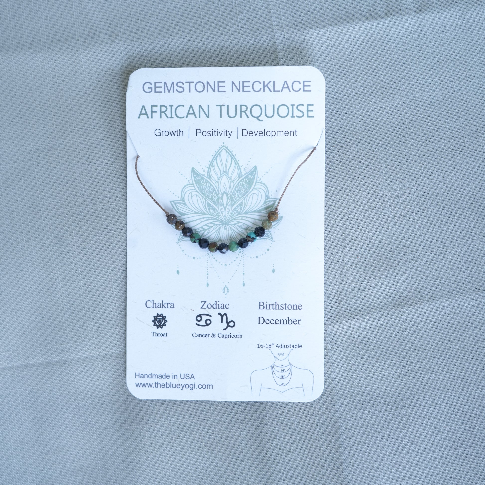 Each Necklace comes with a card with a watercolor Mandala art and healing properties of the crystal (as shown in photo)