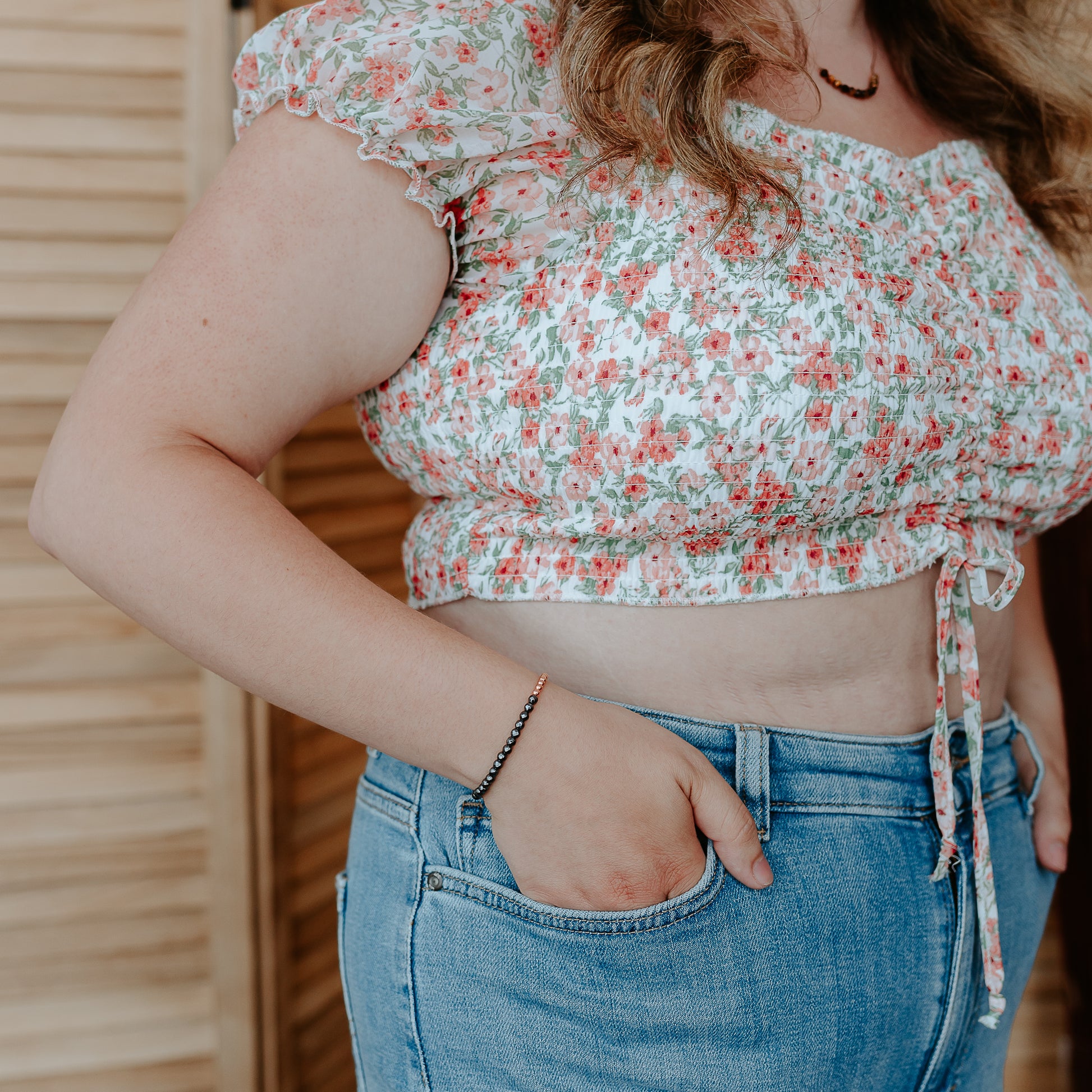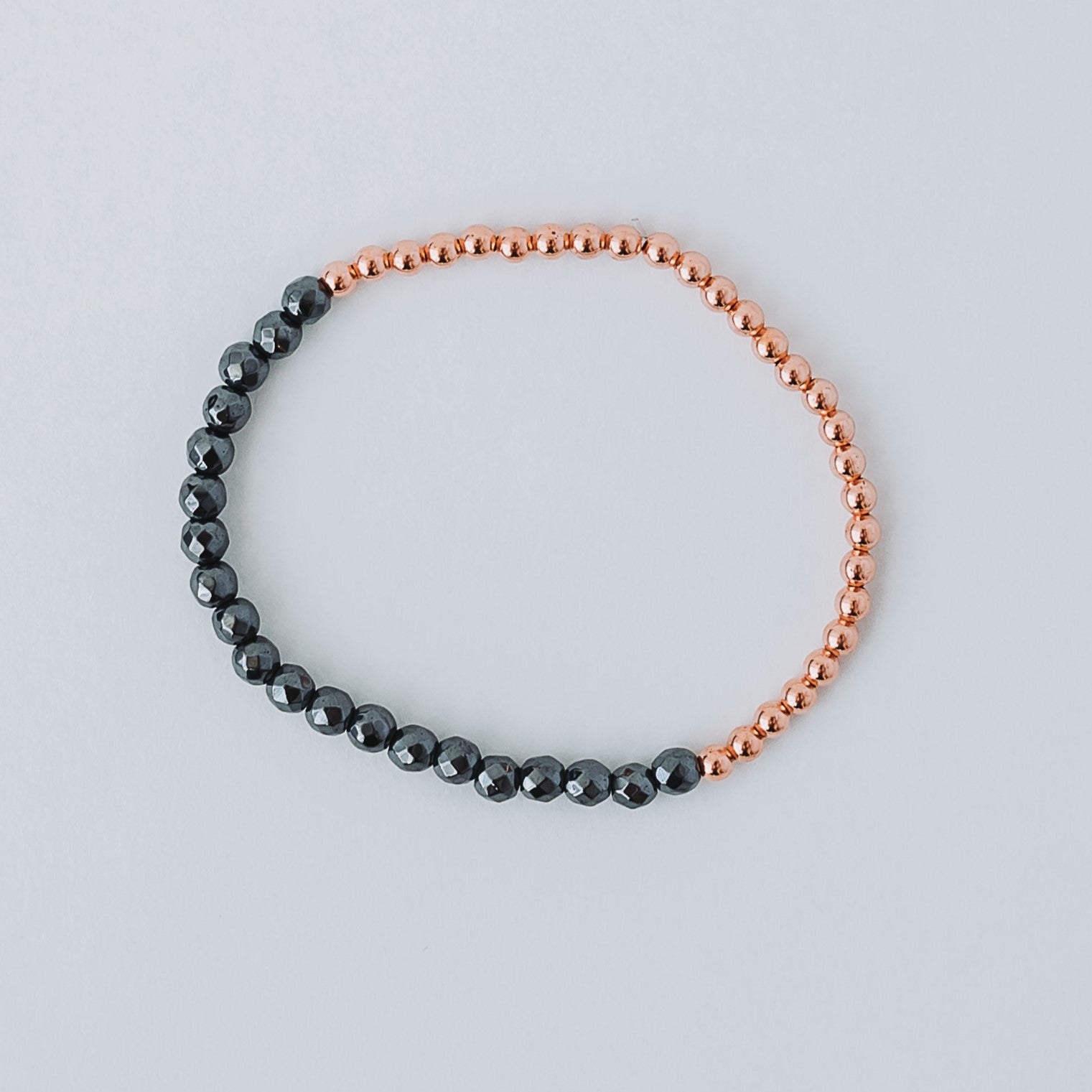 Dainty and Minimal Stretchy bracelets with multi-faceted 4mm Hematite + 3mm Solid copper beads