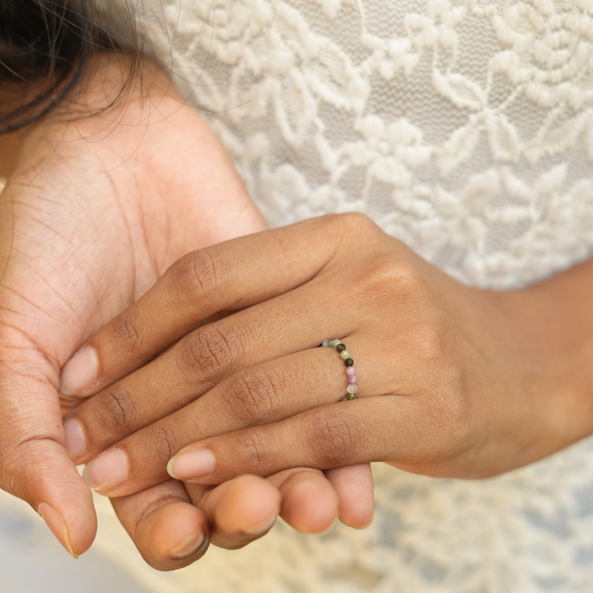 Elastic Anti-Anxiety Fidget Ring Made of Natural Faceted Gemstone Beads - Tourmaline