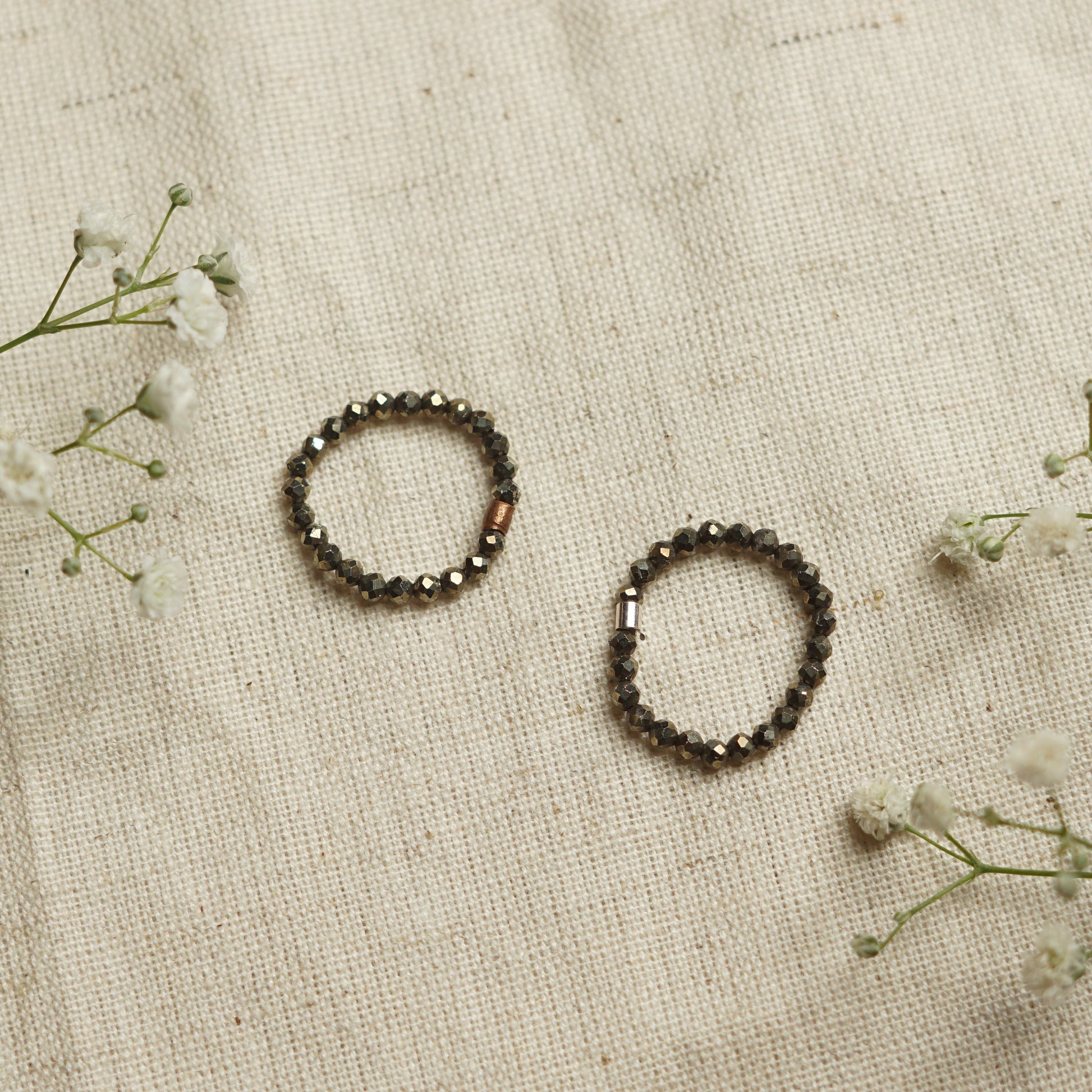 Elastic Anti-Anxiety Fidget Ring Made of Natural Faceted Gemstone Beads - Pyrite