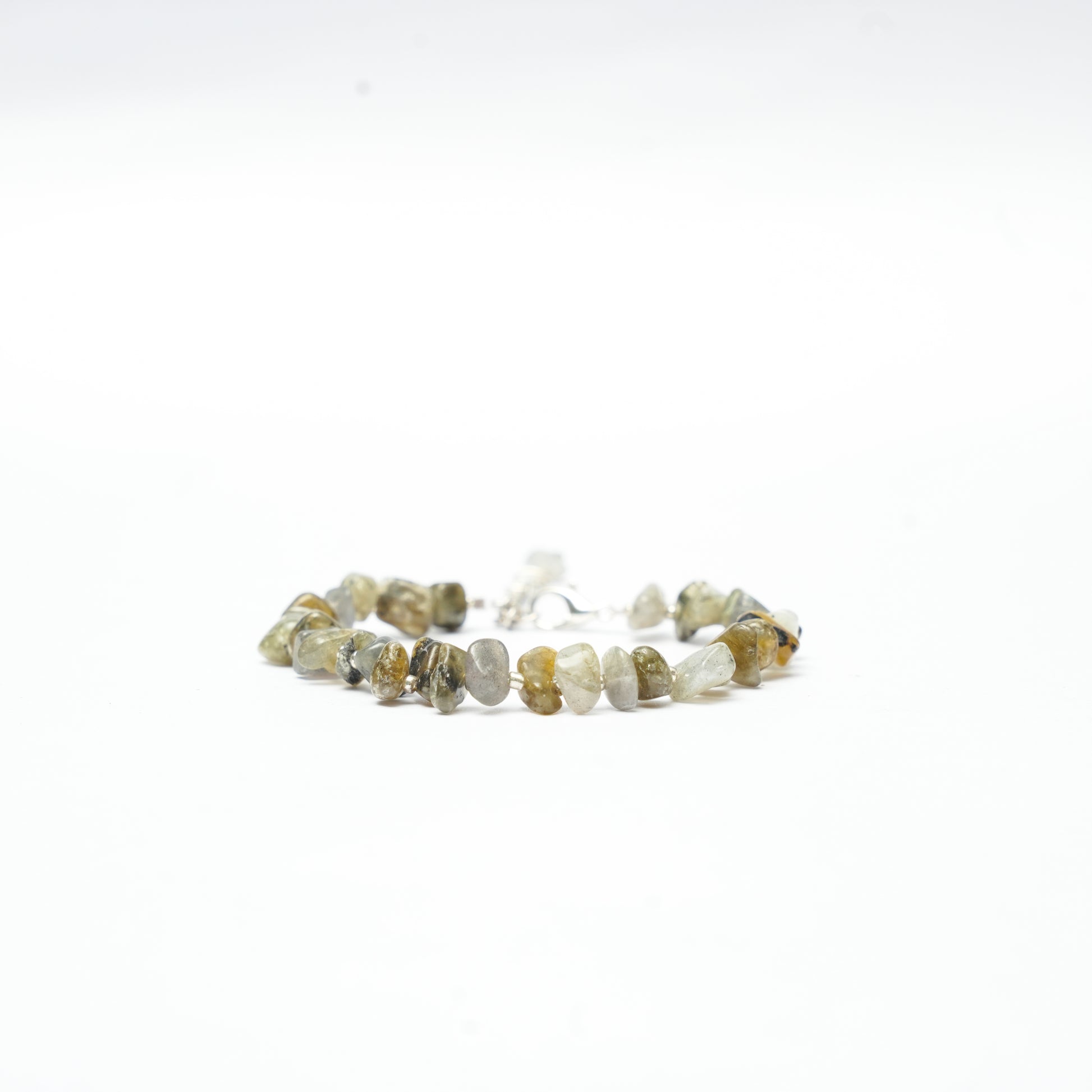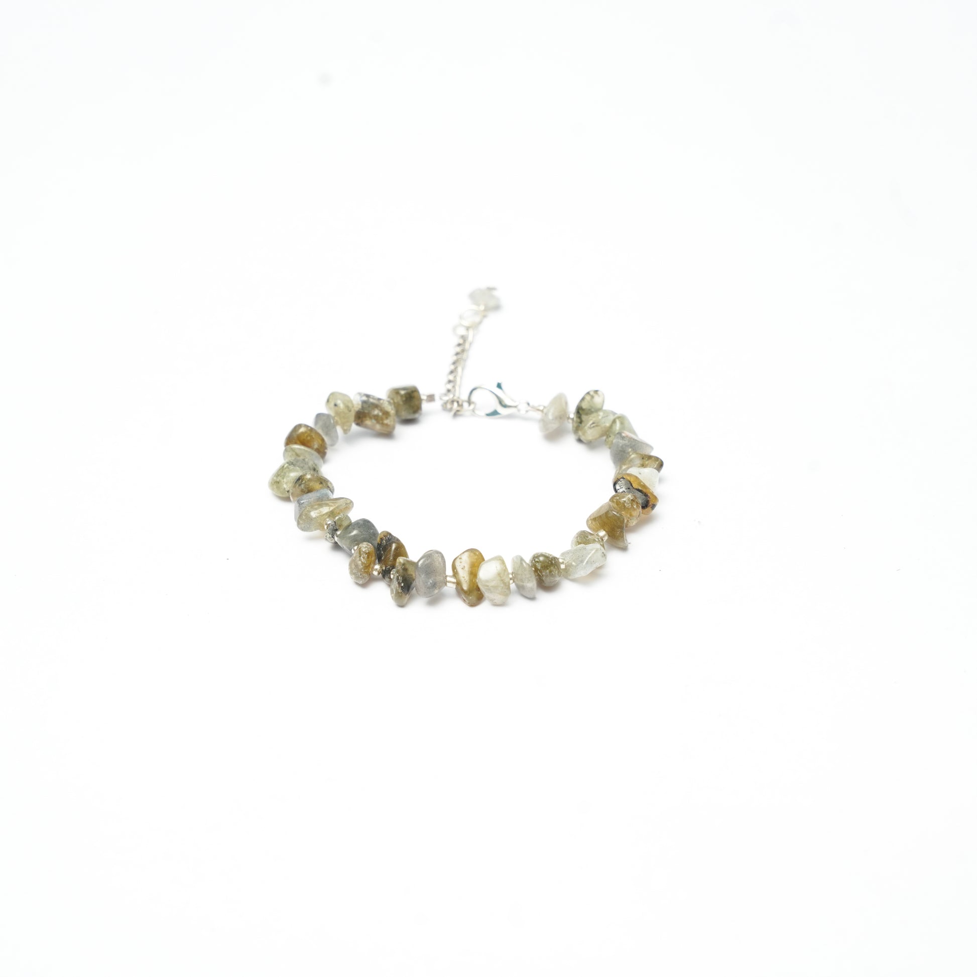 Discover the mystical energy of Labradorite, the stone of transformation and protection. This natural chip bracelet shimmers with flashes of blue, green, and gold, symbolizing strength, intuition, and spiritual growth.