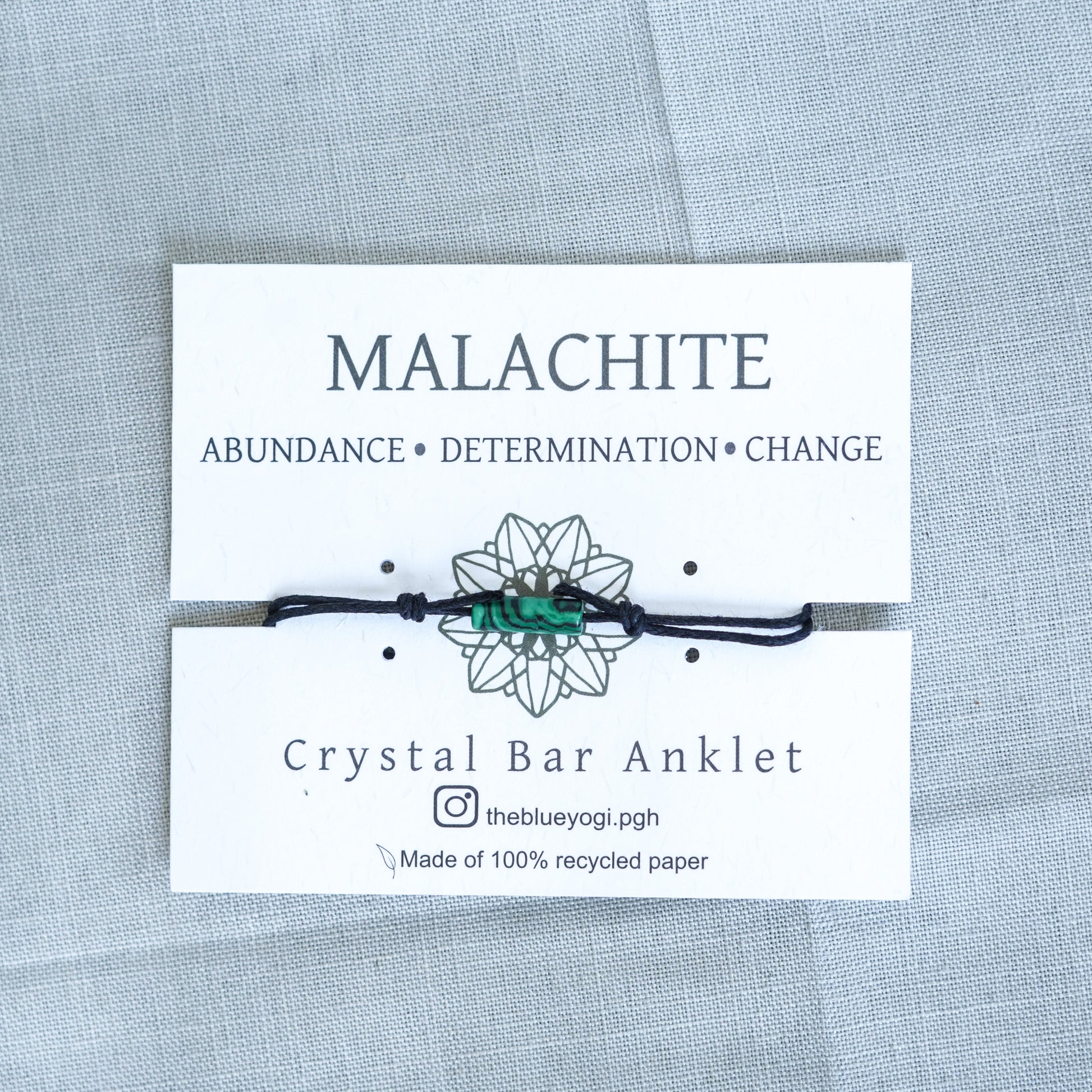This Minimal Anklet is anklet made with Malachite and waxed cotton cord.