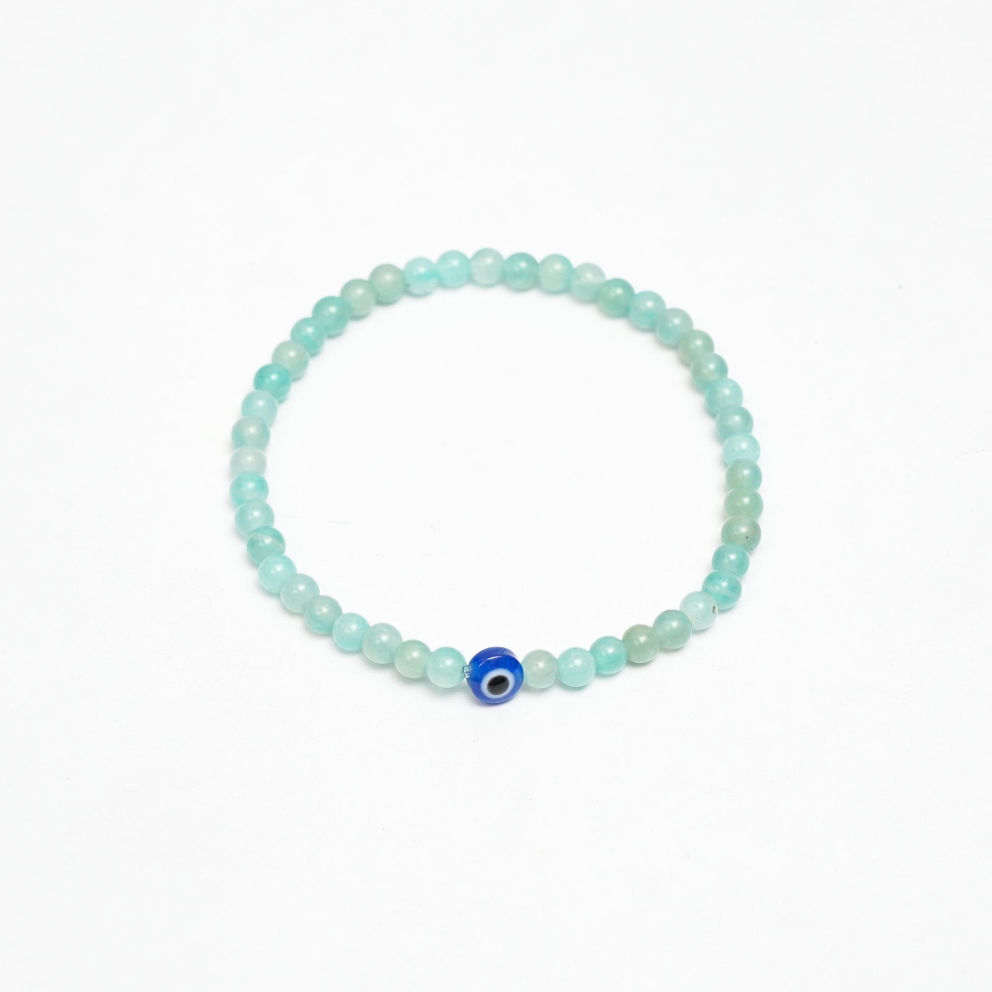 Natural Amazonite stretchy Bracelet with SS and Evil eye Beads