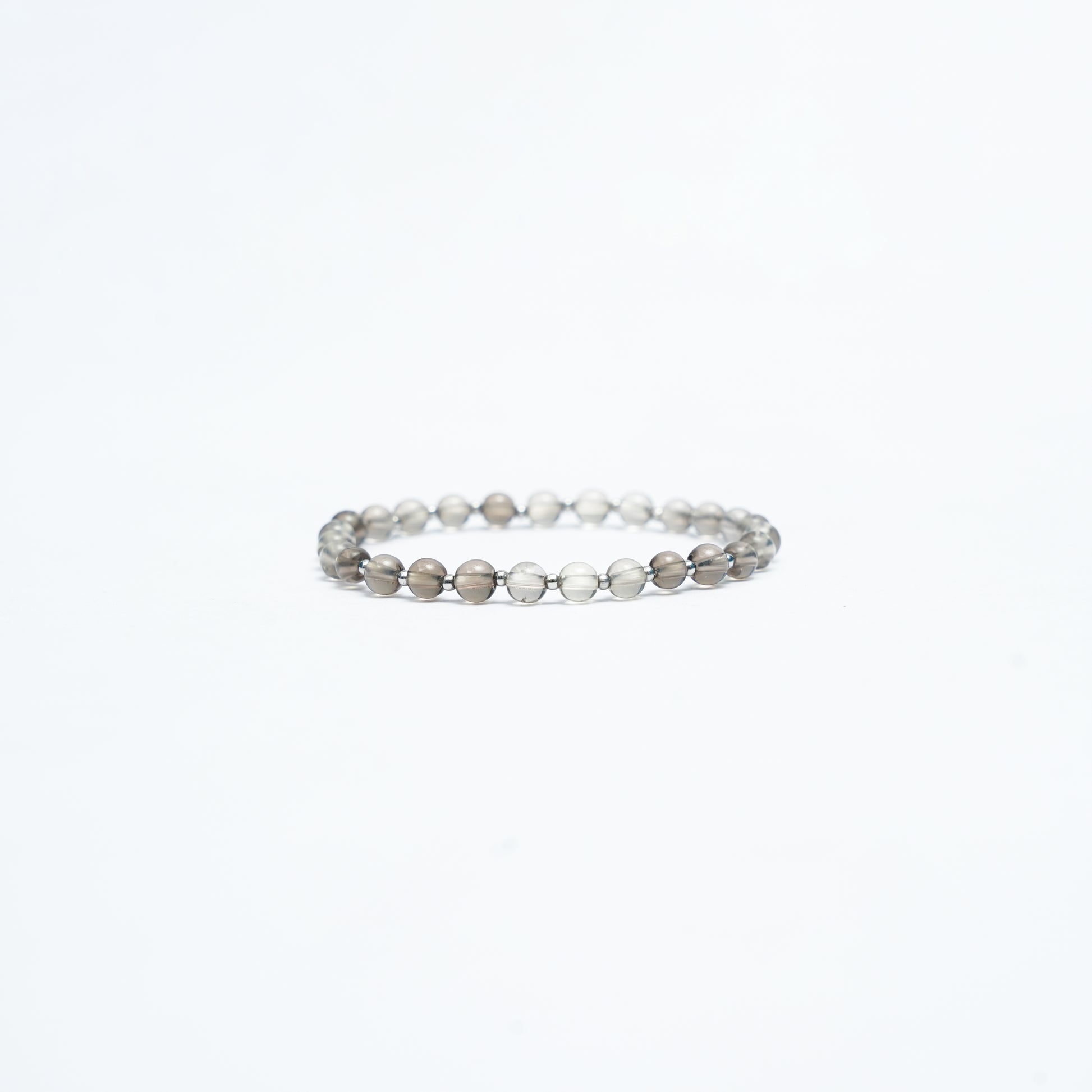 Natural Smoky Quartz Stretchy bracelet with Stainless steel beads